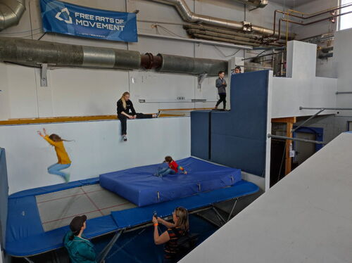 Auf dem Riesentrampolin vermitteln wir die Basics bis hin zu Frontflips, Backflips und andere coole Sprünge.