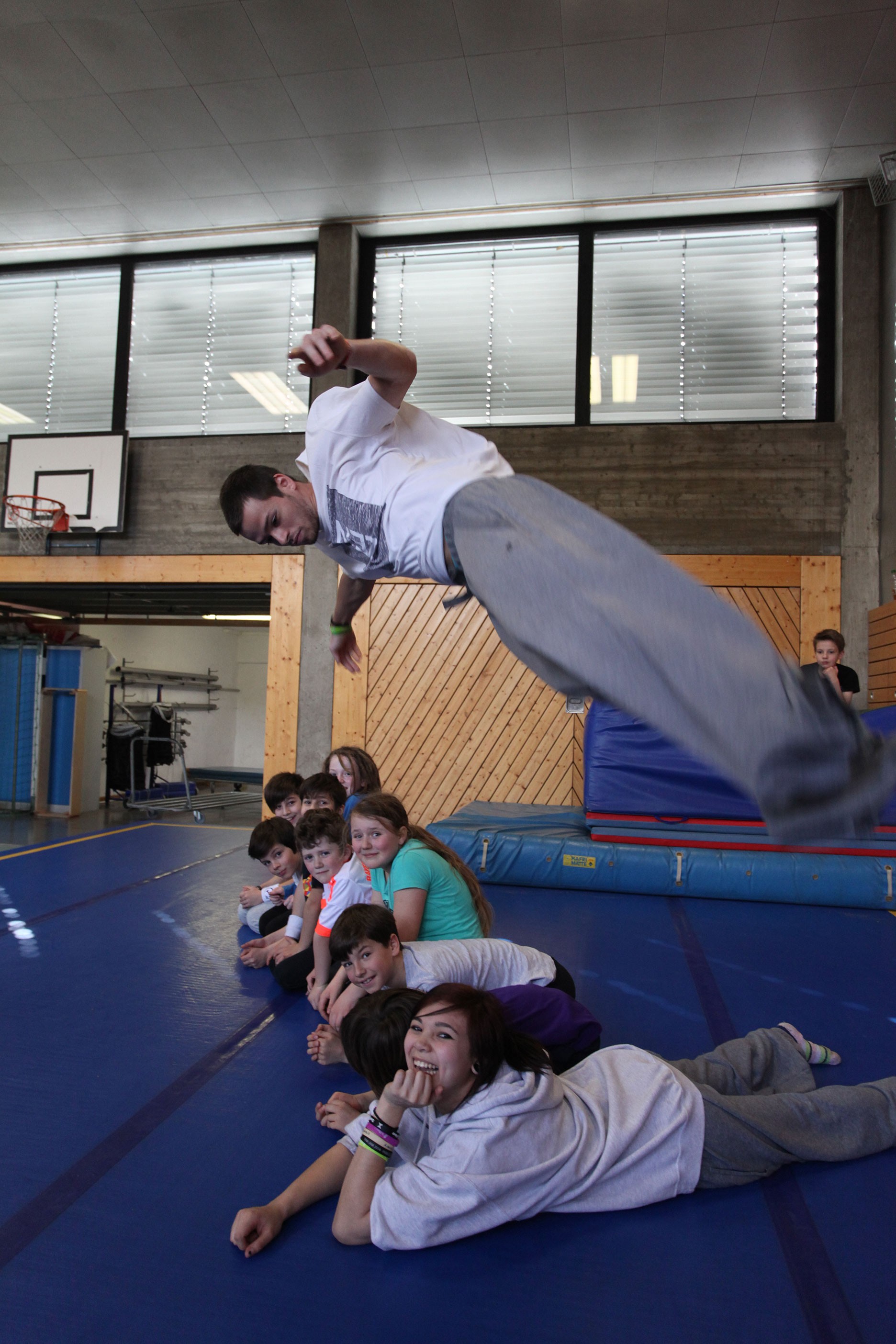 Auf unserem sportlichen Programm stehen spannende Trendsportarten Parkour, Freerunning, Freestyle Akrobatik, Freestyle Trampolin, Slacklining. Dazu haben wir viele kreative Bewegungsspiele und -aufgaben vorbereitet. Willkommen sind junge Leute von 6-16 Jahre.