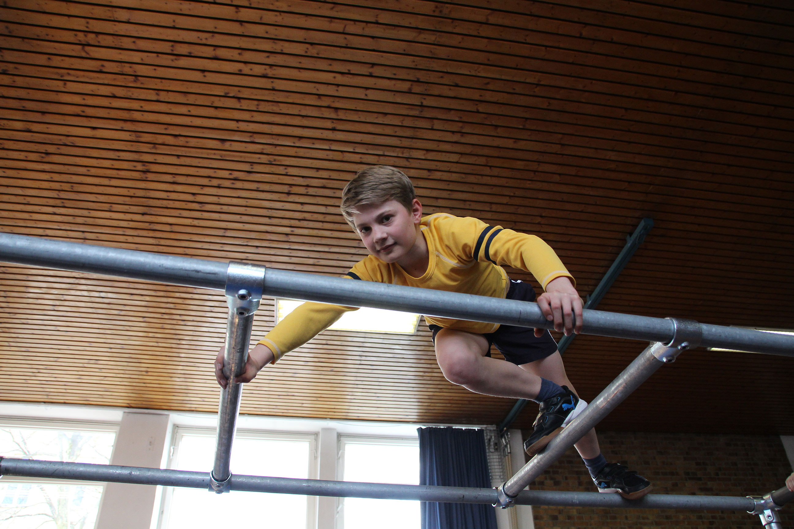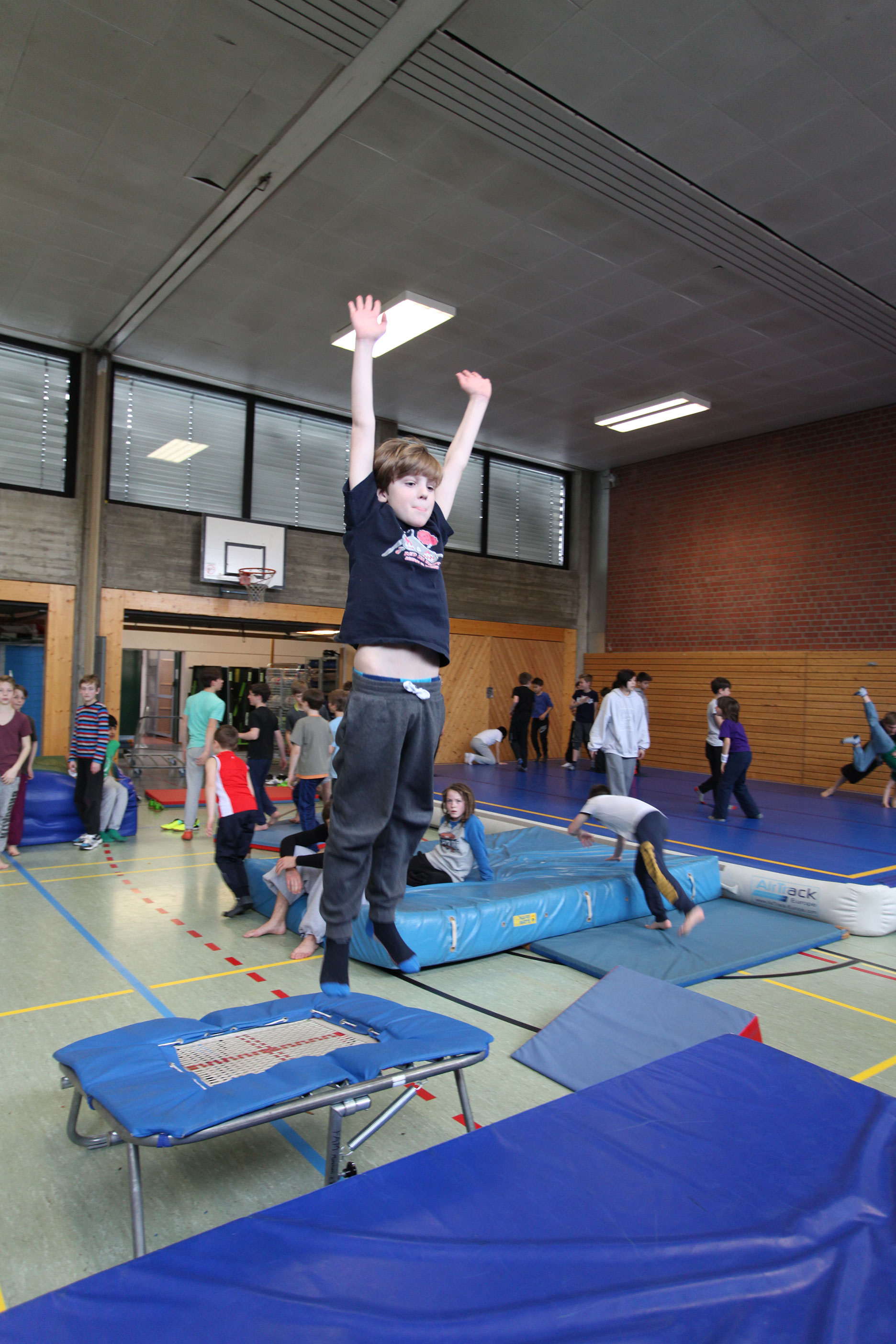 Die Bewegungslandschaft der Halle mit Airtrack, Riesentrampolin und Parkour-Hindernissen lässt keinen Platz zur Langeweile. Dazu gibt es in Milbertshofen ein Stangengerüst, und in der Ludwig-Thoma-Realschule die Boulderwand. Wir machen Ausflüge zu unserem Parkour Park am Candidplatz und erforschen die Stadt auf eine kreative sportliche Weise!